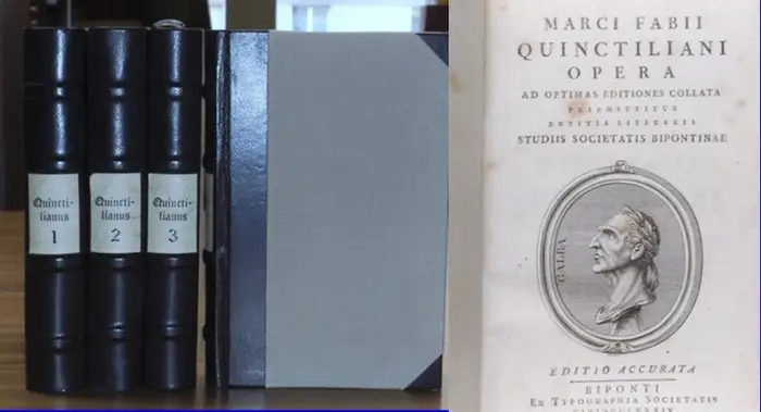 Titel: Marci Fabii Quinctiliani Opera. Ad Optimas Editiones Collata Praemittitur Notitia Literaria .Studiis Societatis Bipontinae . - Editio Accurata / Volumen Secundum / Tertium / Quartum. Komplett in vier Bänden