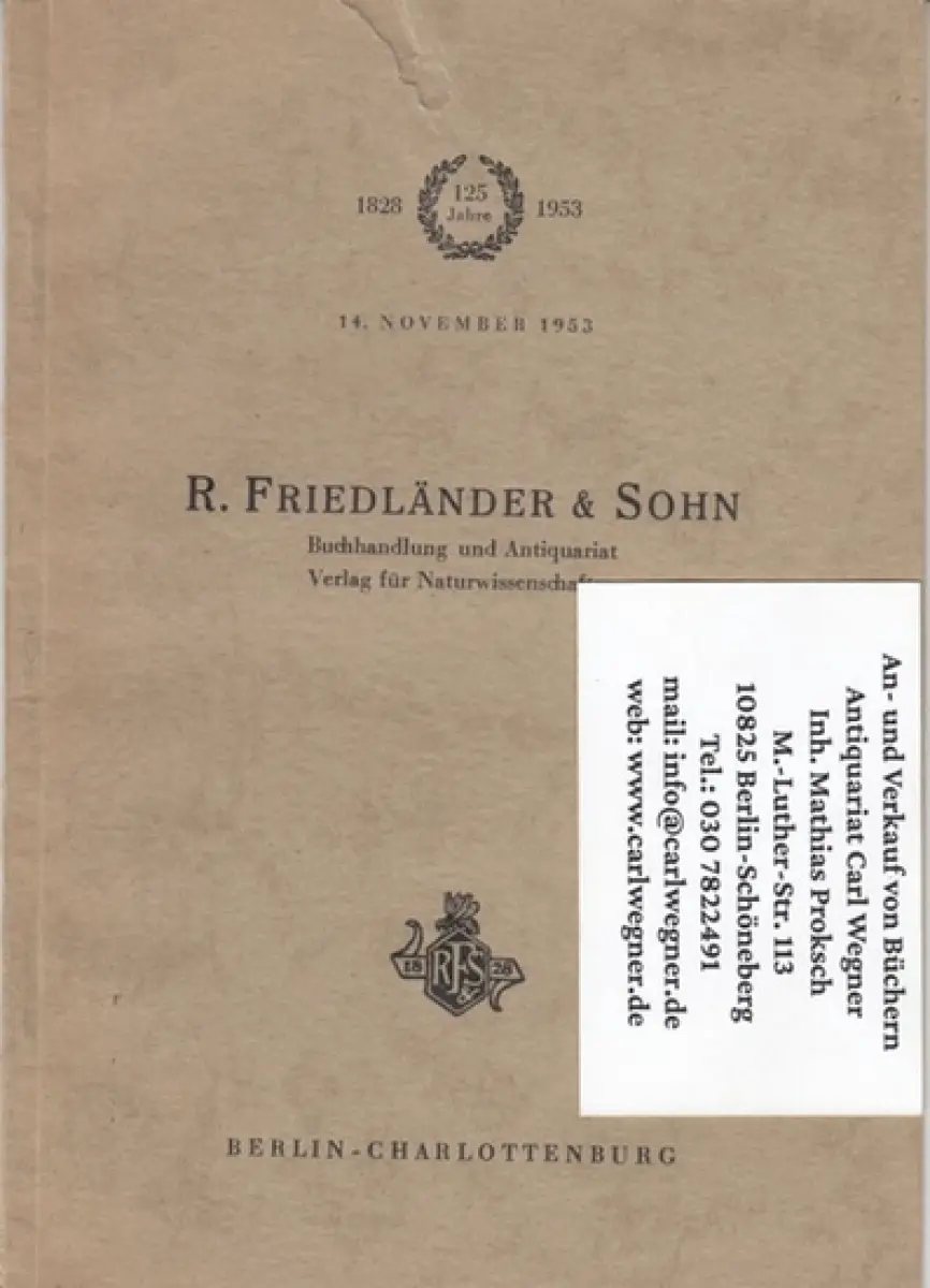 R. Friedländer & Sohn, Berlin, Buchhandlung und Antiquariat: Festschrift zum 125jährigen Jubiläum, 14. November 1953 (125th anniversary).