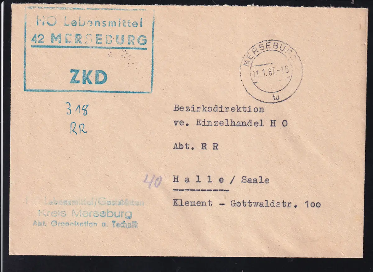 R3 HO Lebensmittel 42 MERSEBURG ZKD auf Brief