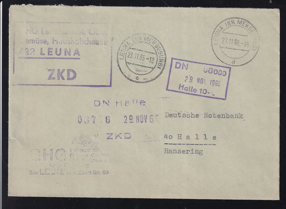 R4 GHG Lebensmittel, Obst, Gemüse, Haoshaltchemie 422 LEUNA ZKD auf Brief