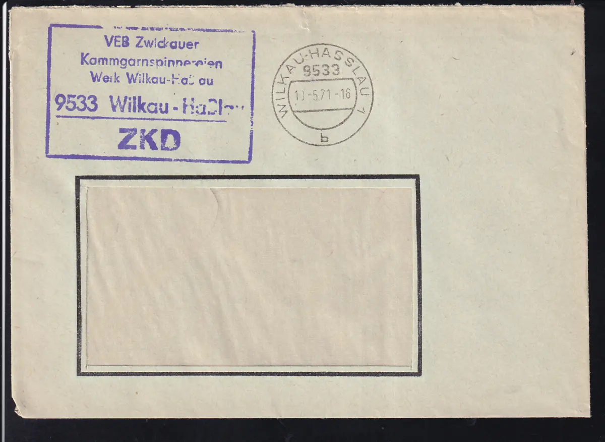 R5 VEB Zwickauer Kammgarnspinnereien Werk Wilkau-Haßlau 9533 Wilkau-Haßlau ZKD auf Fensterbrief