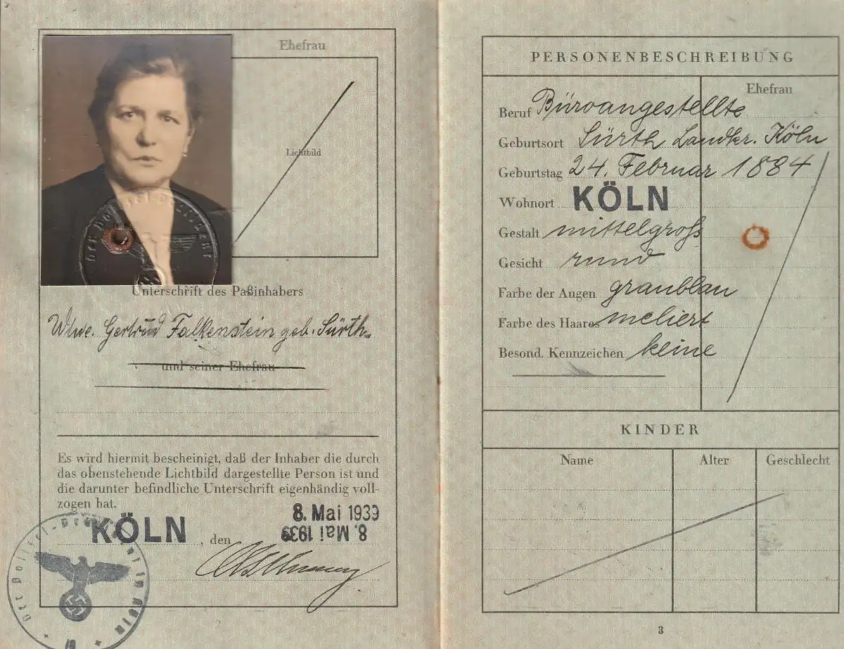 DOKUMENT - AUSWEIS, Reisepass des Deutschen Reiches, Köln 1933