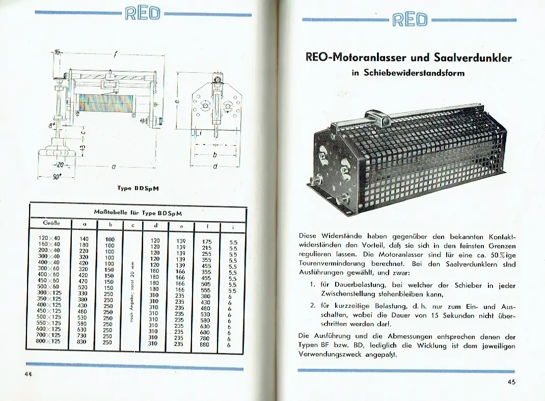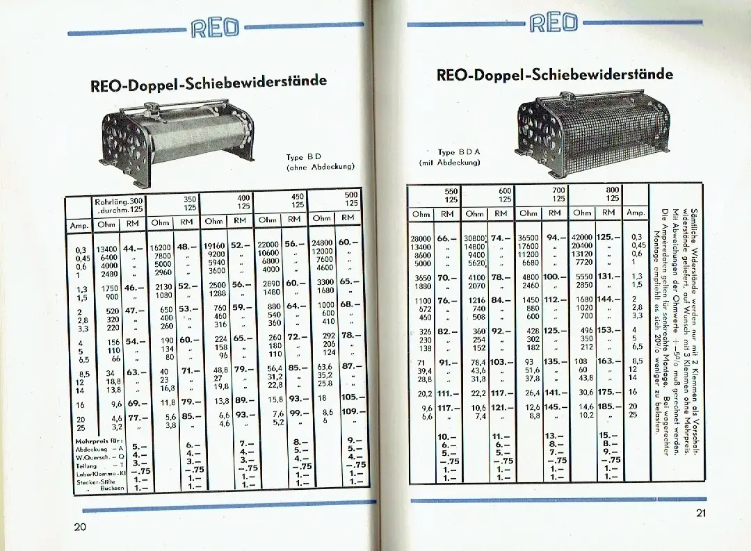 guter bis sehr guter Zustand, geringe Gebrauchs- und Alterungsspuren: Umschlag leicht verschmutzt - Rückseite etwas angeknickt, Allgemeine Beschreibung - Rohr-Widerstände mit 40 und 60 mm Durchmesser - Ohmwerte und Mehrpreise für induktionsfreie Wicklung - Maßbilder und Maßtabellen - Rohr-Widerstände mit 125 mm Durchmesser - Ohmwerte und Mehrpreise für induktionsfreie Wicklung - Maßbilder und Maßtabellen - Sonderausführungen - Universal-Schiebe-Widerstände - Feinregulier-Widerstände - Feinregulier-Widerstände - Einbau-Schiebe-Widerstände - Einbau-Seilzug-Widerstände - Einbau-Spindel-Widerstände mit Kegelradübersetzung - Saalverdunkeler und Motoranlasser - Bogenlampen-Widerstände - Lade-Widerstände - Ring-Gleit-Widerstände - Platten-Gleit-Widerstände - Kleintransformatoren - Auftrags- und Lieferungsbedingungen, kartoniert, ca. 15 x 20,5, 68 Seiten mit zahlreichen Bildern