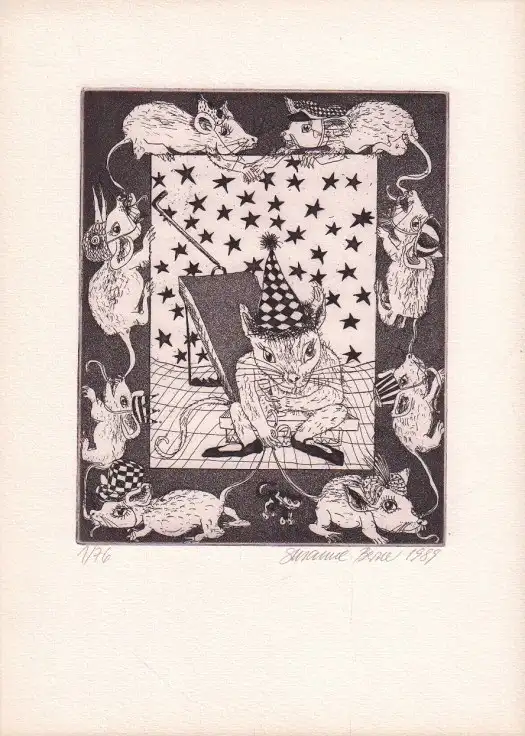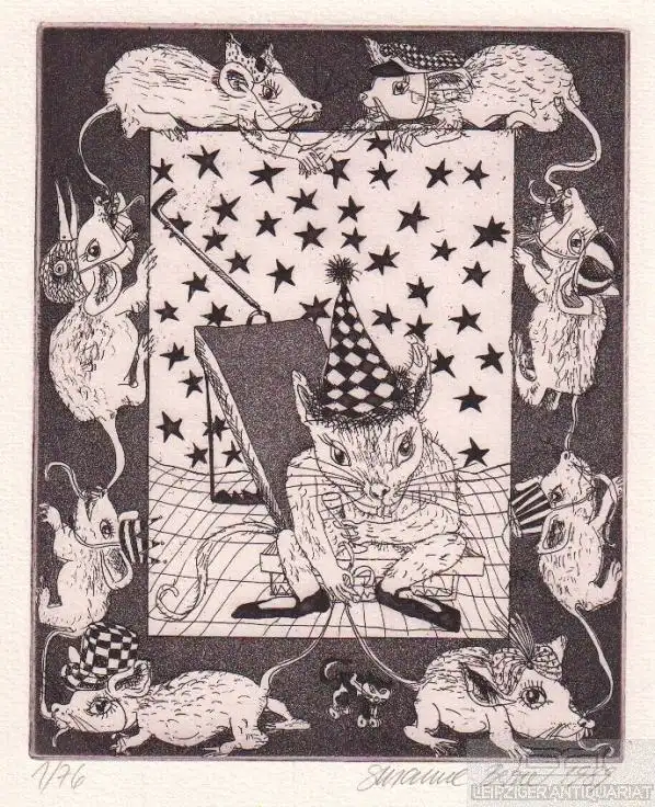 Bemerkungen: Zustand: Schönes sauberes Blatt // Nummeriert und signiert. Kunstgrafik. Druckgröße: 19,5 x 15,5 cm aus der Grafikmappe Nr. 4. : Zum vierzigjährigen Bestehen des Verlages. Die Grafikmappe wurde in einer Auflage von 200 Exemplaren gedruckt. Davon sind 50 Exemplare römisch numeriert und nicht für den Verkauf bestimmt. Susanne Berner (geboren 1949 in Halle/Saale) ist eine deutsche Grafikerin und Illustratorin. Berner studierte an der Hochschule für Grafik und Buchkunst Leipzig. Nummer 1 von 76