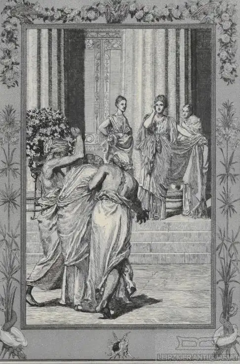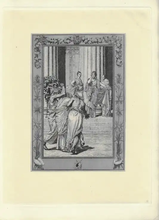 Bemerkungen: Zustand: Blatt mit minimalen Lichtrand und kleinen Knicken an den Ecken, mit kleinen Einriss am linken Rand // Auf gewalztem gelbem China, auf Velinkarton, Strichätzung & Aquatinta, in Schwarz. Kunstgrafik. Druckgröße: 35 x26 cm, Max Klinger (1857 Leipzig - 1920 Großjena) die Mappe I. Max Klingers Radierungen zu Apulejus Märchen Amor und Psyche Opus Va. enthielt 15 Vollbilder