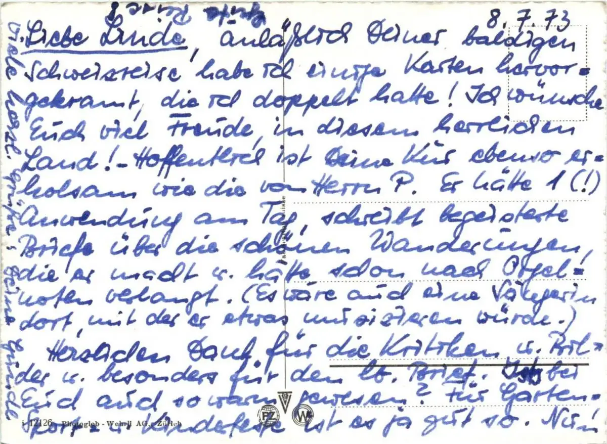 Danke. Alles Bestens. Können Sie mir allenfalls mitteilen, aus welchem Jahr die Postkarte stammt? Besten Dank.