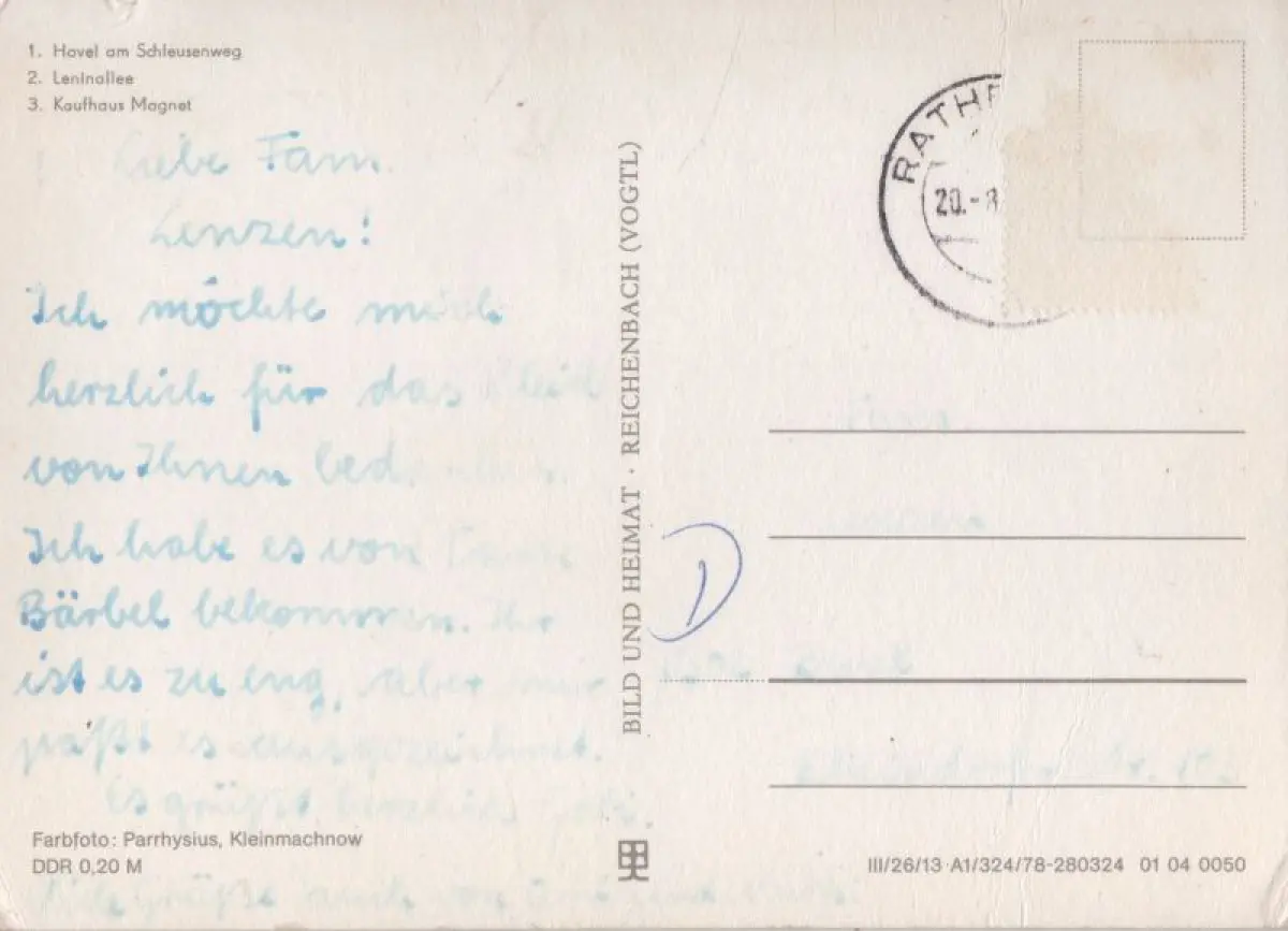 Postleitzahl:14712 (neu) / O 1830 (alt)