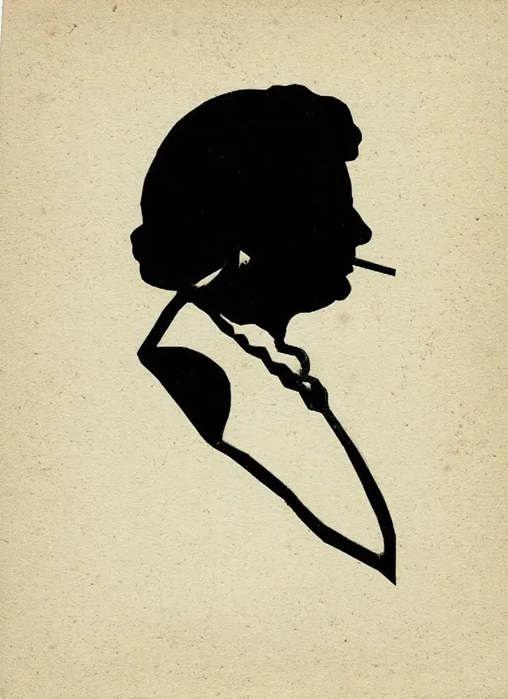 Rauchende Frau im Profil. Original-Scherenschnitt