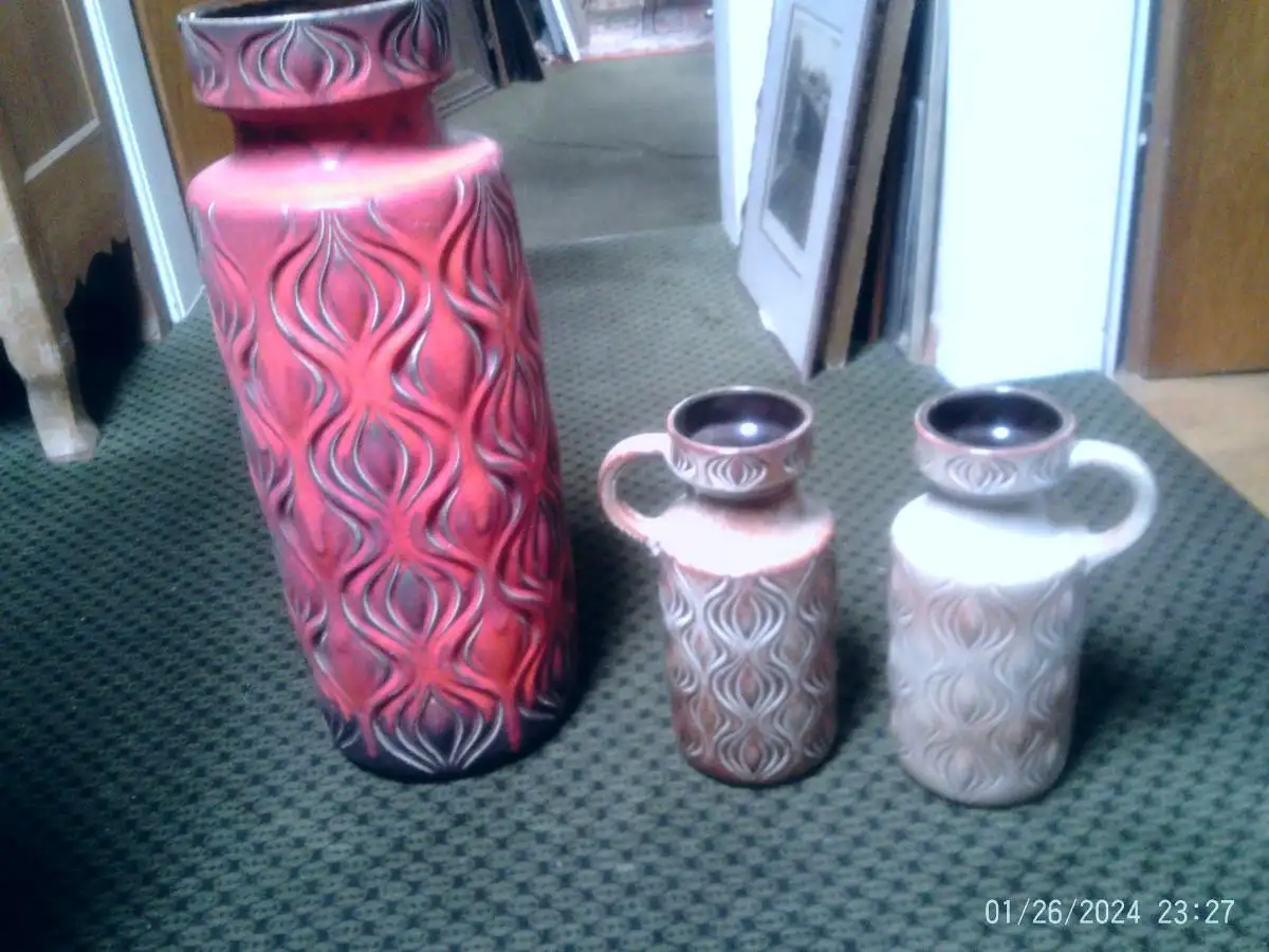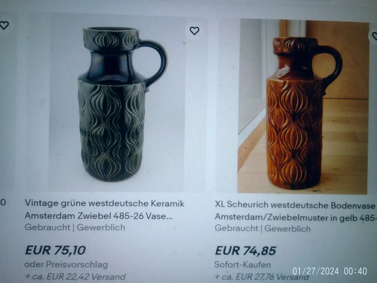 Keramik rechts Scheurich Amsterdam Designer Oswald Kleudgen Model 485-26 Mid Century Mokka und Beige sehr selten !