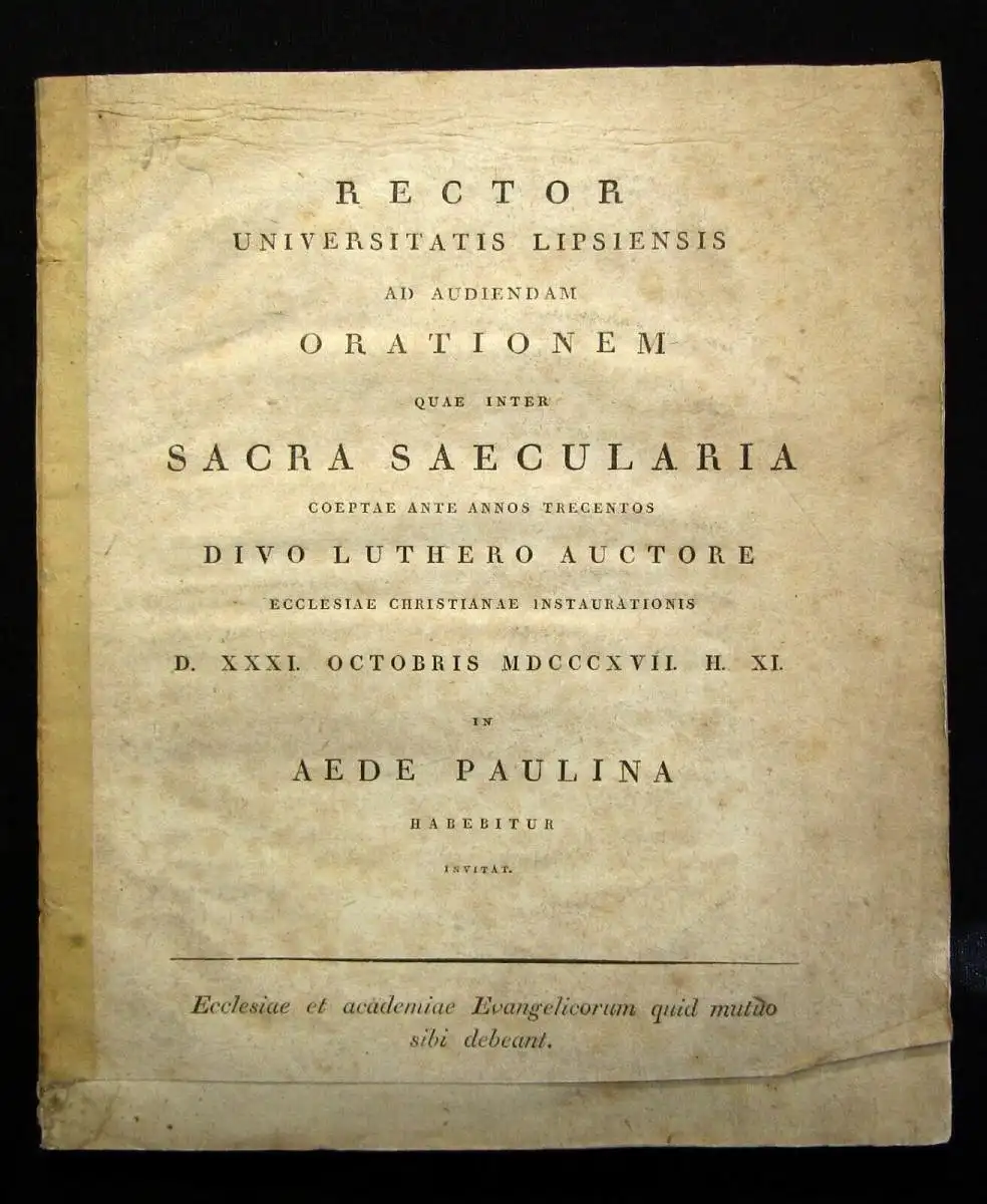 D. XXXI. Octobris MDCCCXVII. H. XI. in Aede Paulina Habebitur Invitat.