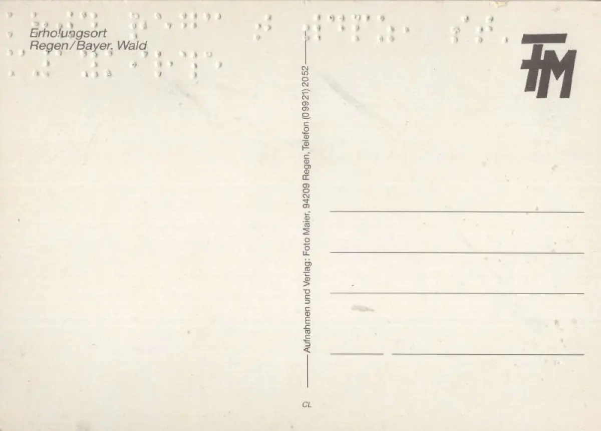 Braille-EindruckPostleitzahl:94209 (neu) / W 8370 (alt)