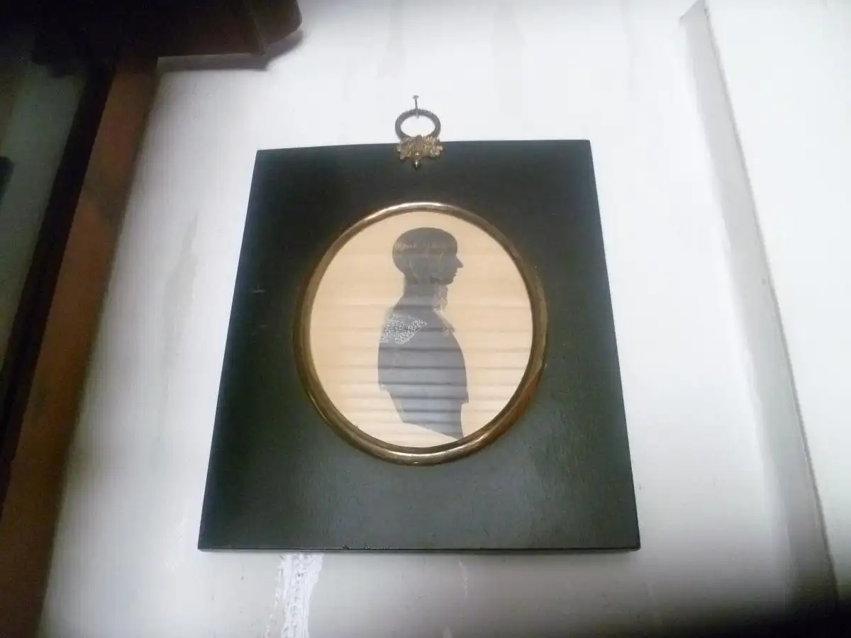 Das Motiv und seine Kleidung sind in Sepia/Schwarz statt im üblichen Braun gemalt. Uns gefällt, wie Field die feinen Details im Haar des Porträtierten mit winzigen, zarten Pinselstrichen gemalt hat – immerhin war er ein Experte im Bronzieren! Wir sehen das typische natürliche lockiges Haar in Gold hervorgehoben der 1830er Jahre. Ein weiteres Sepia-Beispiel finden Sie in der Field-Silhouette von Jeremy Bentham in der National Portrait Gallery.