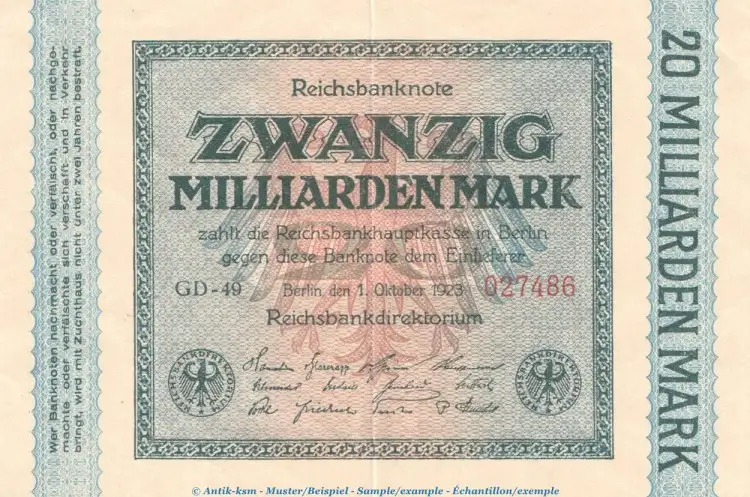 Reichsbanknote über Zwanzig Milliarden Mark von 1923 , Weimarer Republik - InflationGrabowski / Rosenberg / Pick : DEU-137.g / 115 / 118