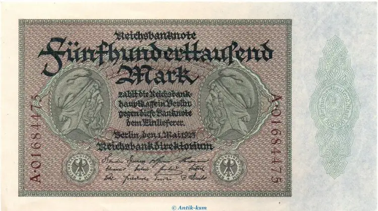 Reichsbanknote über Fünfhunderttausend Mark von 1923 , Weimarer Republik - InflationGrabowski / Rosenberg / Pick : DEU-99.d / 87 / 88