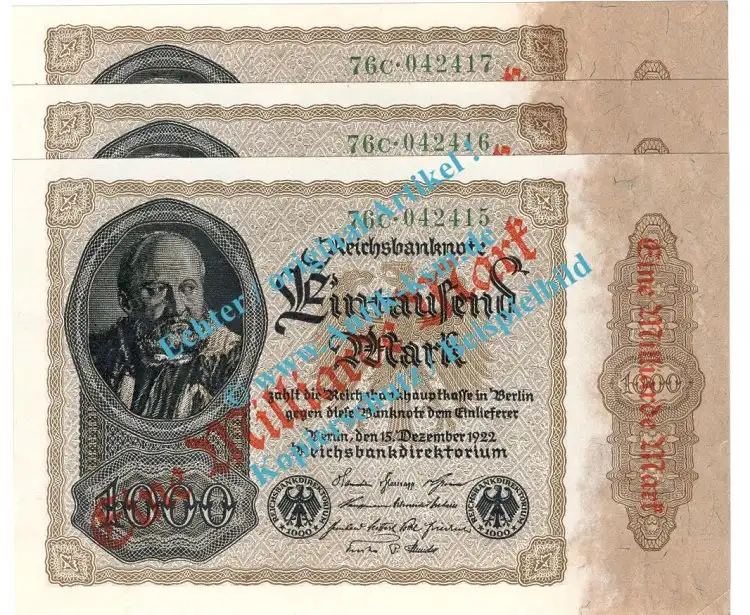 Datum : 15.12.1922  ,  Wasserzeichen : "1000 M" im Spiralband