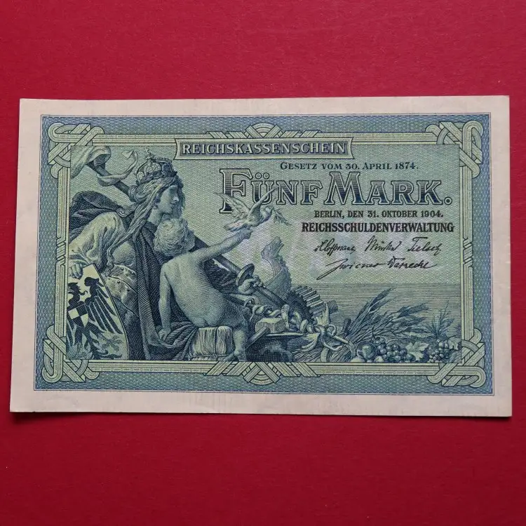 Reichsbanknote , Fünf Mark Schein von 1904 , Reichskassenschein - deutsches KaiserreichGrabowski / Rosenberg / Pick : DEU-52 / 22 / P.8