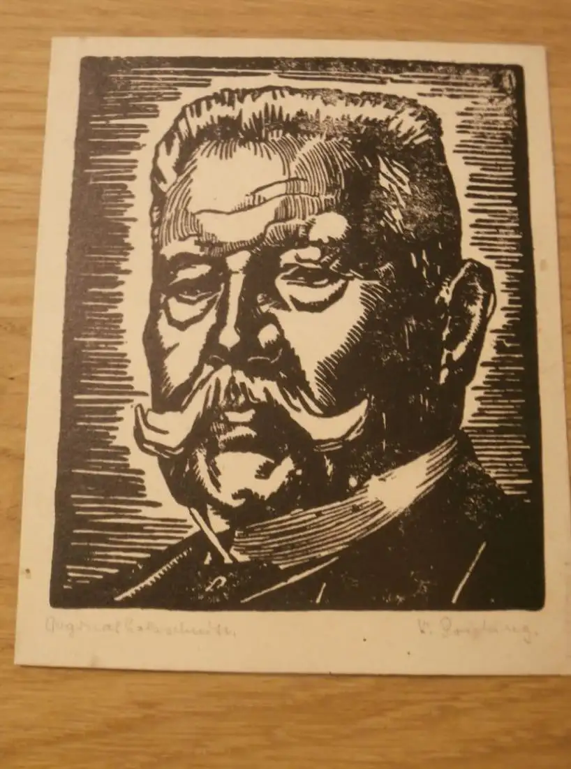 Reichspräsident - Paul von Hindenburg - original Holzschnitt , Bildnis , Mecklenburg !! 120x100mmAZ-WR/1h