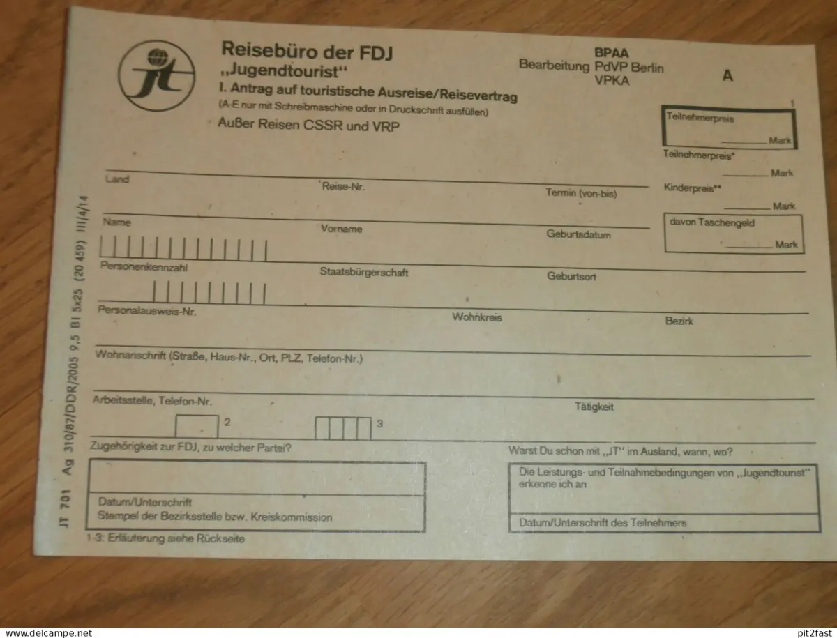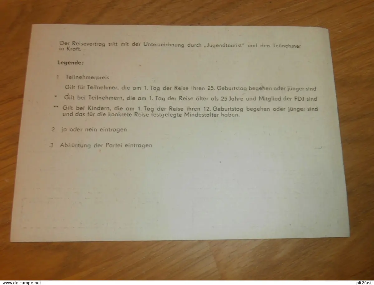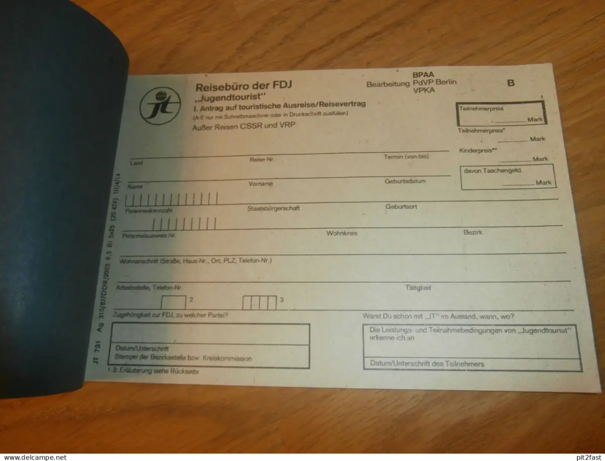 Reisebüro der FDJ , Anträge auf Ausreise , VPKA , Jugendtourist , DDR , altes Dokument , Reklame / Werbung !!AZ-WR/2L