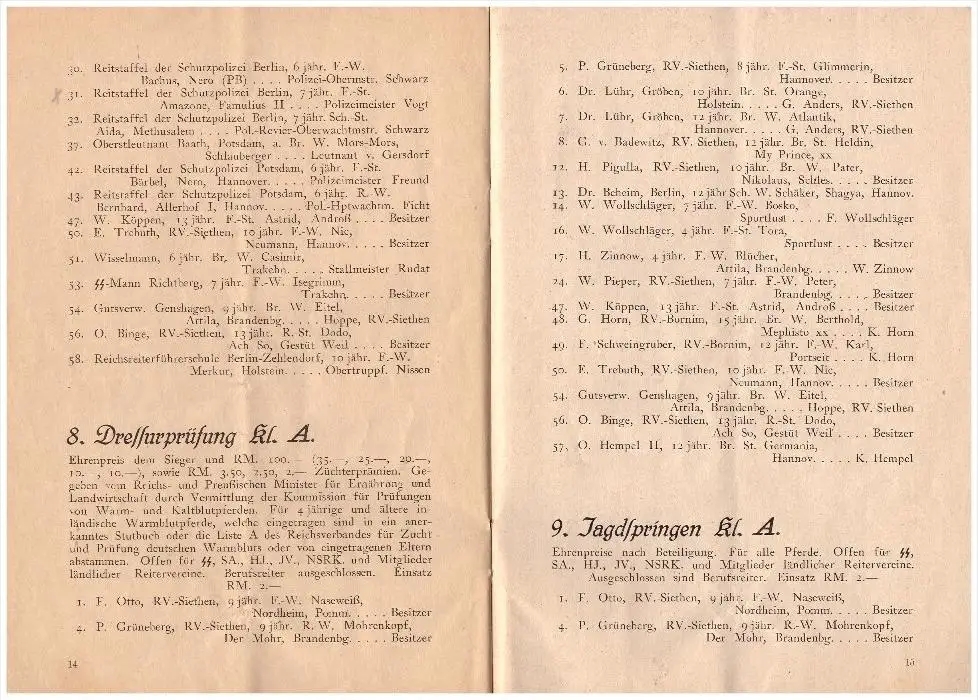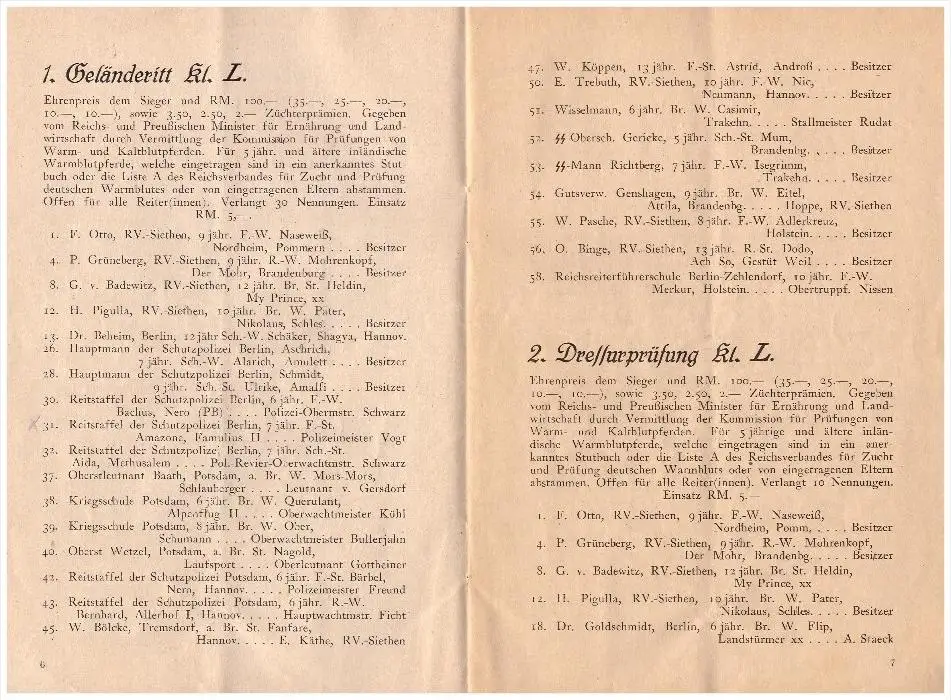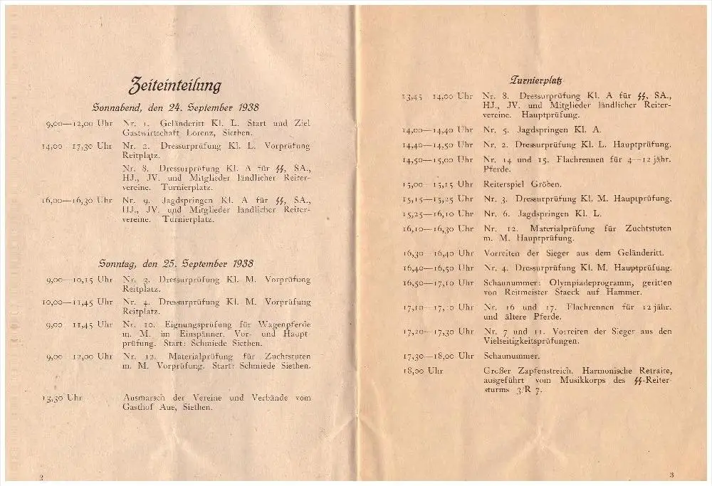 Reitverein Siethen - Gröben , 1938 , Programm - Ausschreibung , Ludwigsfelde , Pferde , Reiten , Pferderennen mit SS