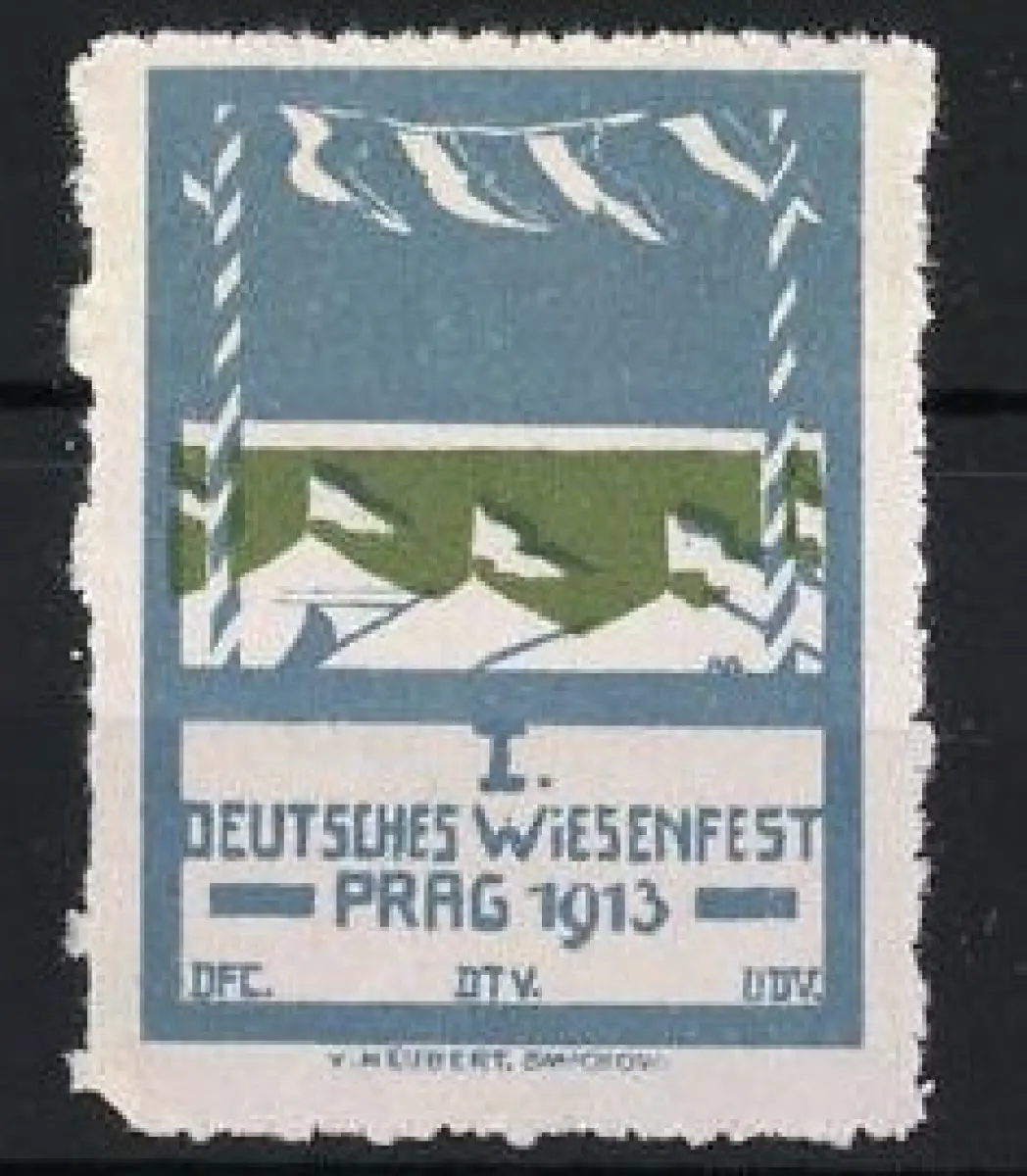 Reklamemarke Prag, 1. Deutsches Wiesenfest 1913, Festzelt mit Fahnen