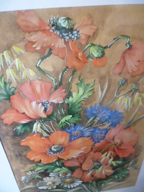 Renner Adolf bedeutendes großes Aquarell signiert Renner Adolf 31.08. 1945 Wiesenblumen Mohn Margeriten ..