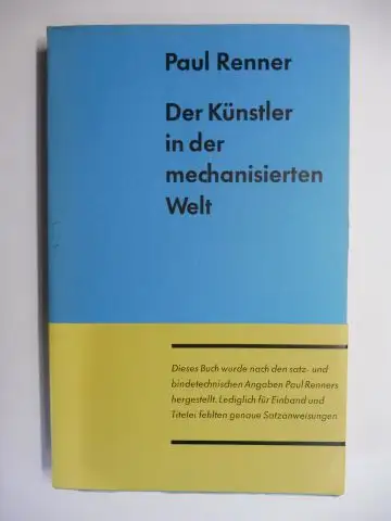 Renner *, Paul: Der Künstler in der mechanisierten Welt.