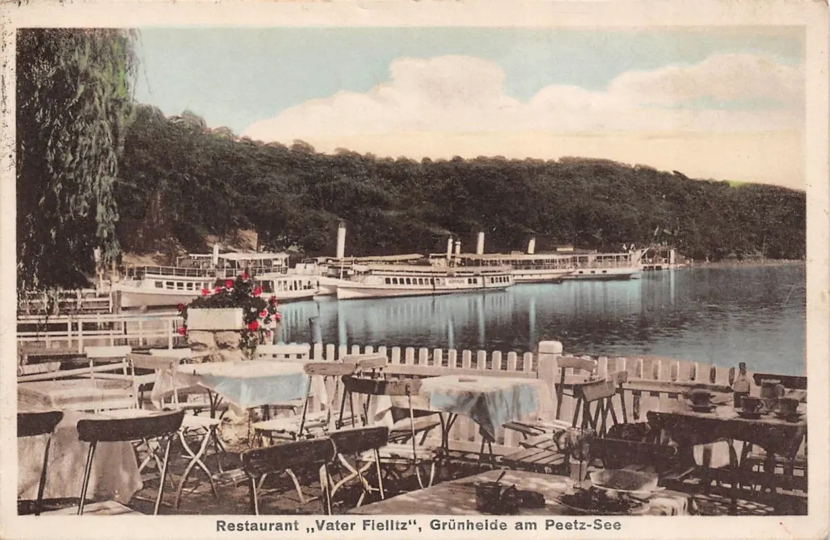 Restaurant "Vater Fielltz", Grünheide am Peetz-See Postkarte AK 1929