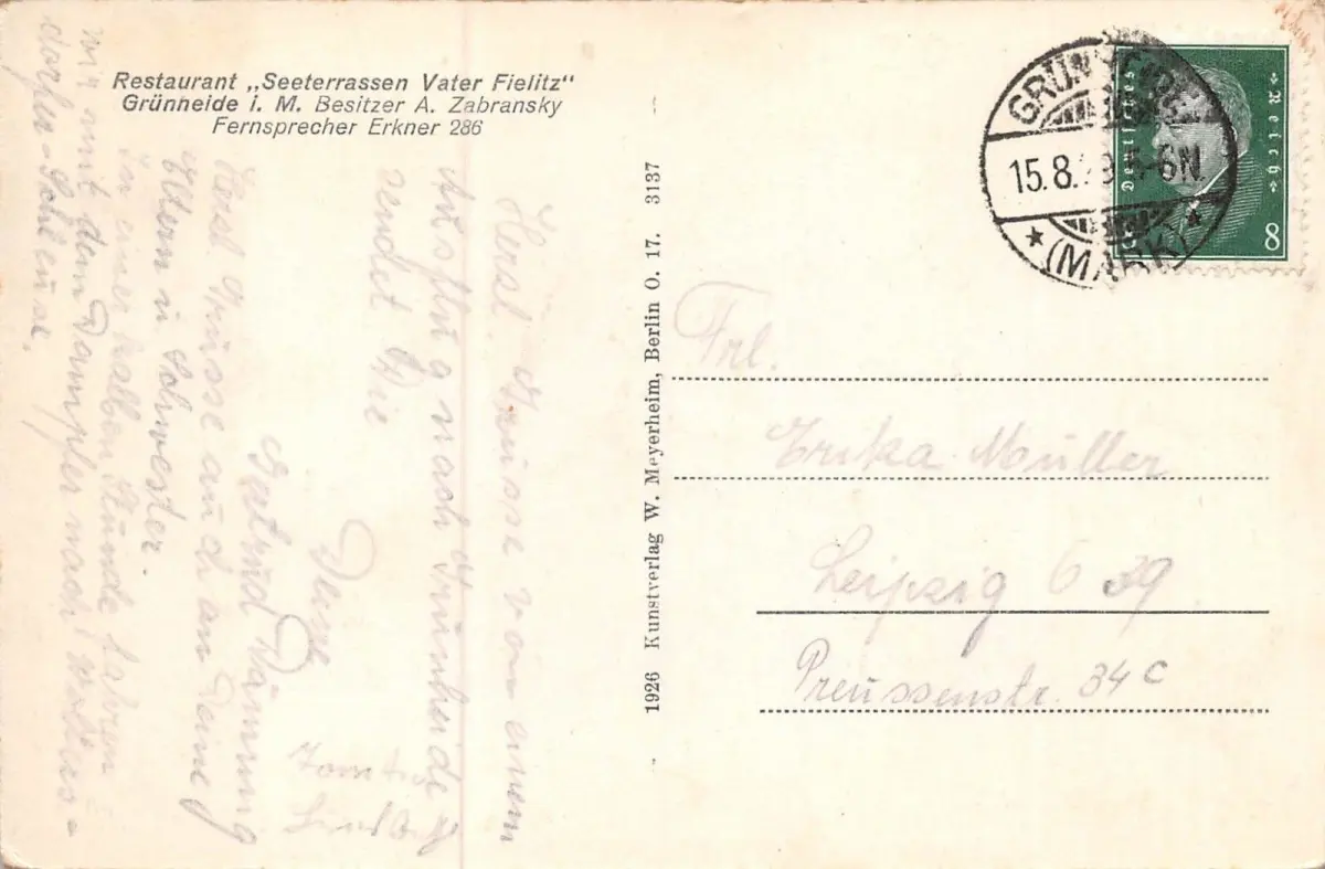 Rückseite: gelaufen 1929 von Grünheide (Mark)