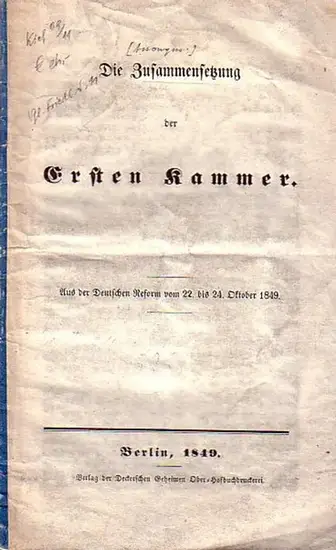 Revolution 1848. - [Anonym:]: Die Zusammensetzung der Ersten Kammer. Aus der Deutschen Reform vom 22. bis 24. Okt. 1849.