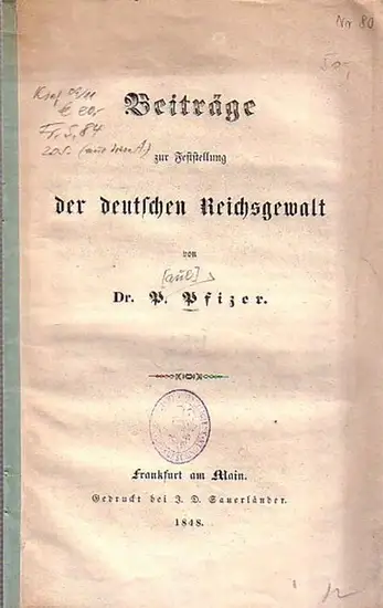 Revolution 1848. - Pfizer, P[aul]: Beiträge zur Feststellung der deutschen Reichsgewalt.