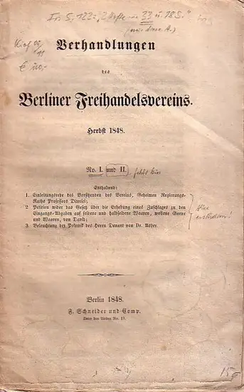Titel: Verhandlungen des Berliner Freihandelsvereins. Herbst 1848. No. I und II