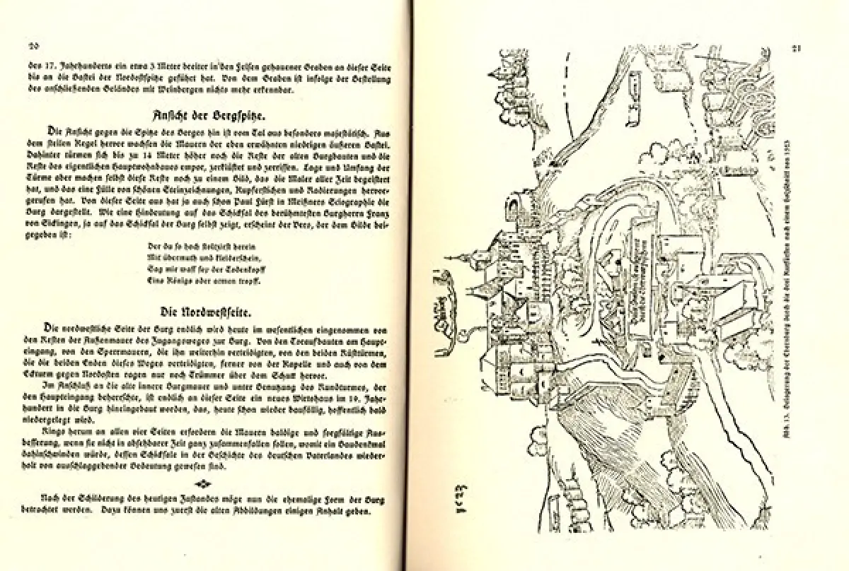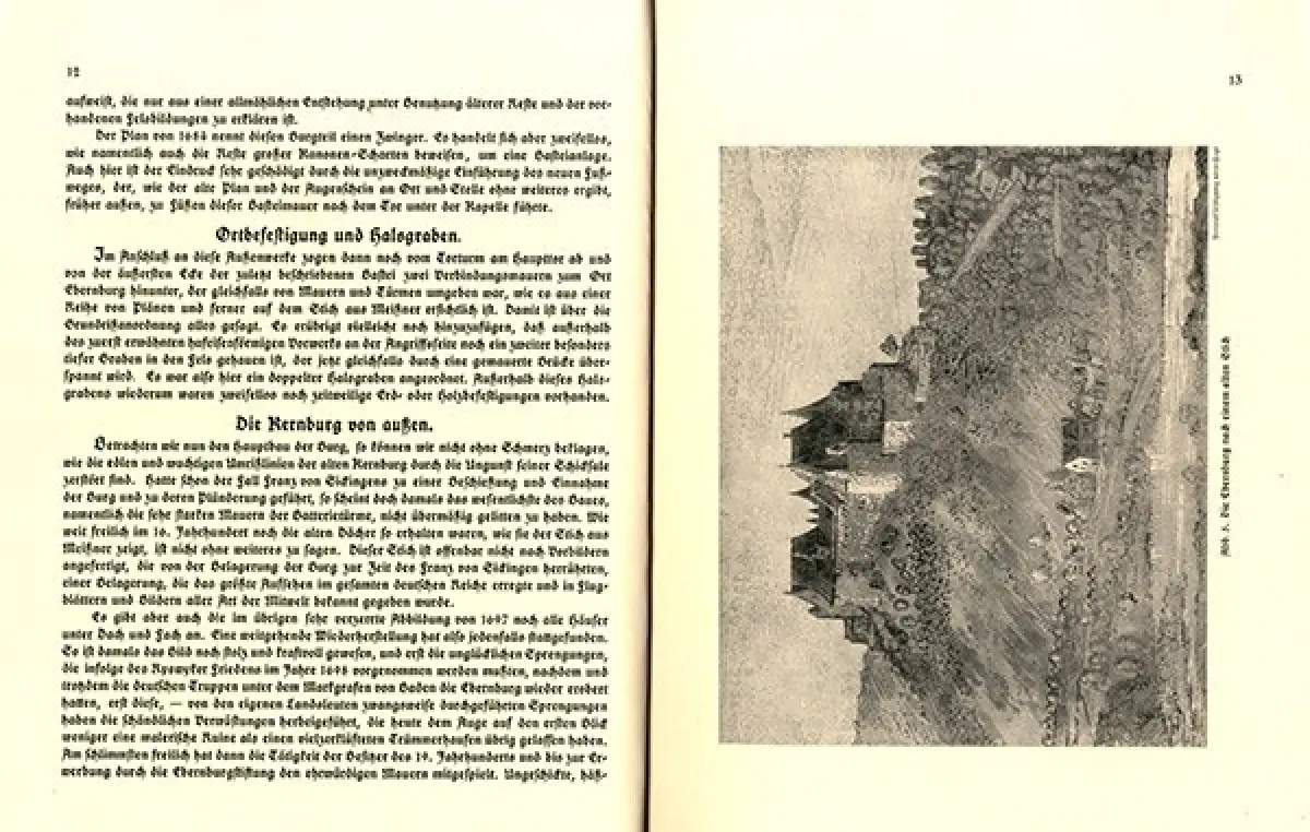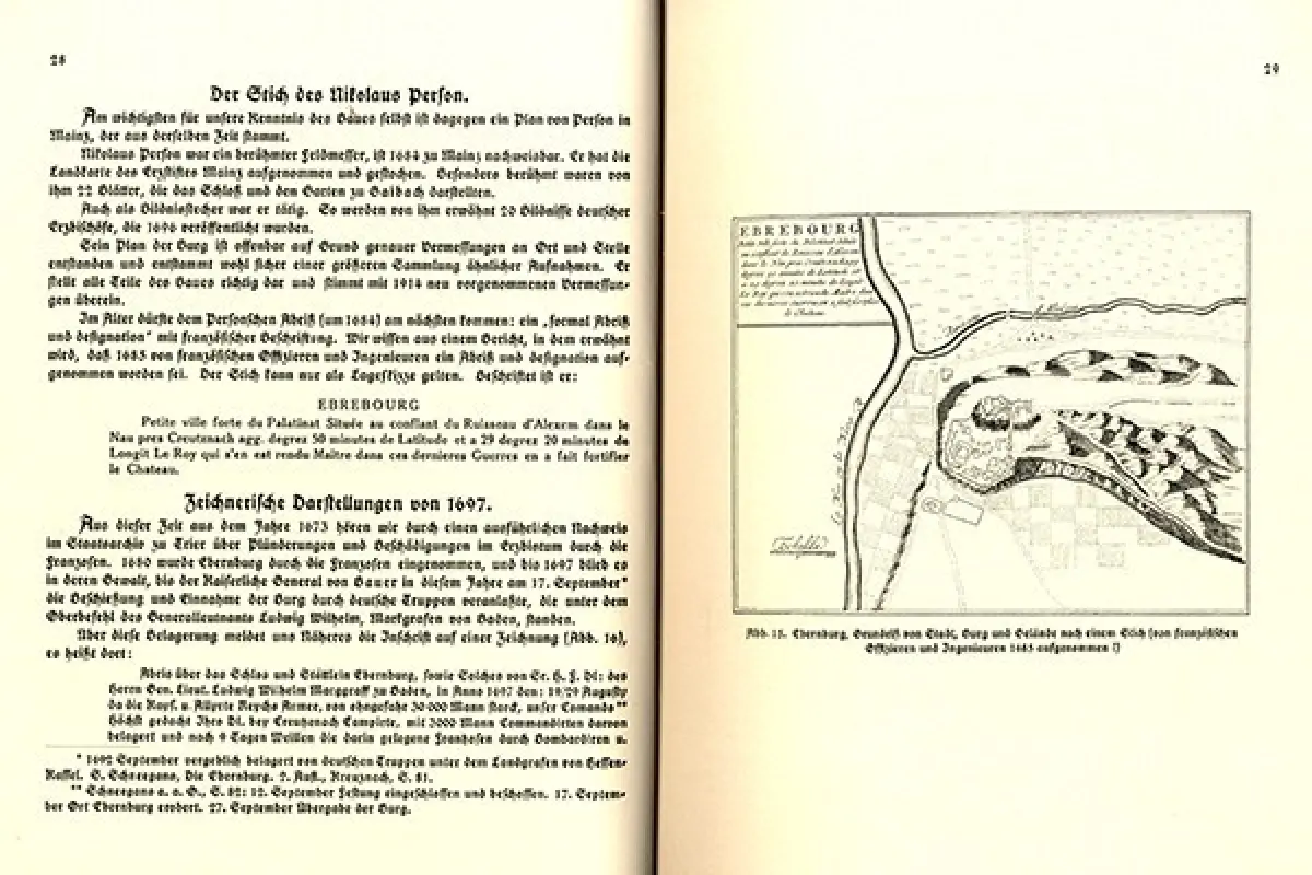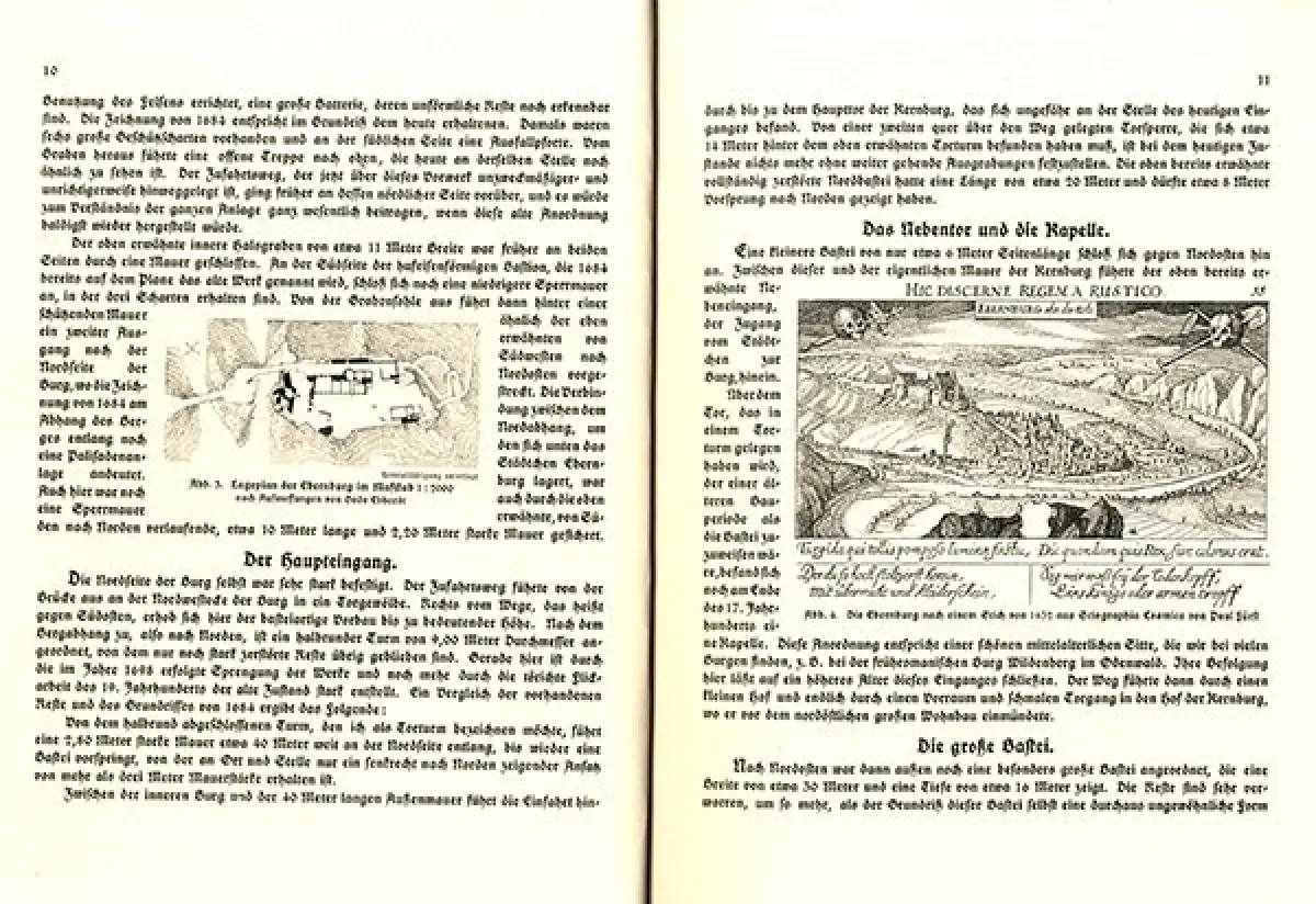 mit GESAMT 64 Seiten einige Bildtafeln photographischen und druckgraphischen Abbildungen Zustand und Beschreibung der Burg Grundriss und Burghof ursprünglihe Gestalt die Kernburg und Bäußere Befestigungsbauten Darstellung der Burg von 1523 und weitere spätere Burgendarstellungen und Pläne Litteratur und Bibliografie zur Ebernburg