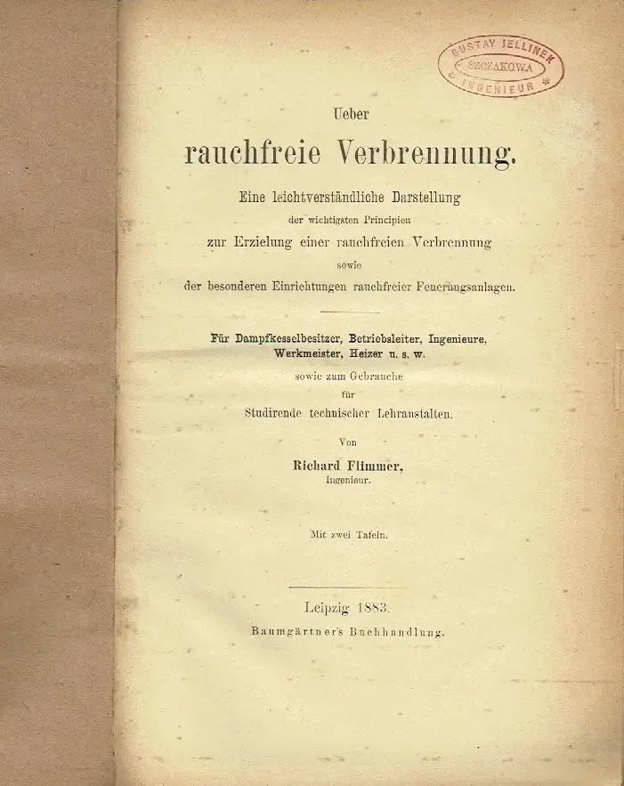 Richard Flimmer: Über rauchfreie Verbrennung Eine leichtverständliche Darstellung der wichtigsten Principien zur Erzilung einer rauchfreien Verbrennung sowie der besonderen Einrichtungen rauchfreier Feuerungsanlagen - Für Dampfkesselbesitzer, Betriebslei
