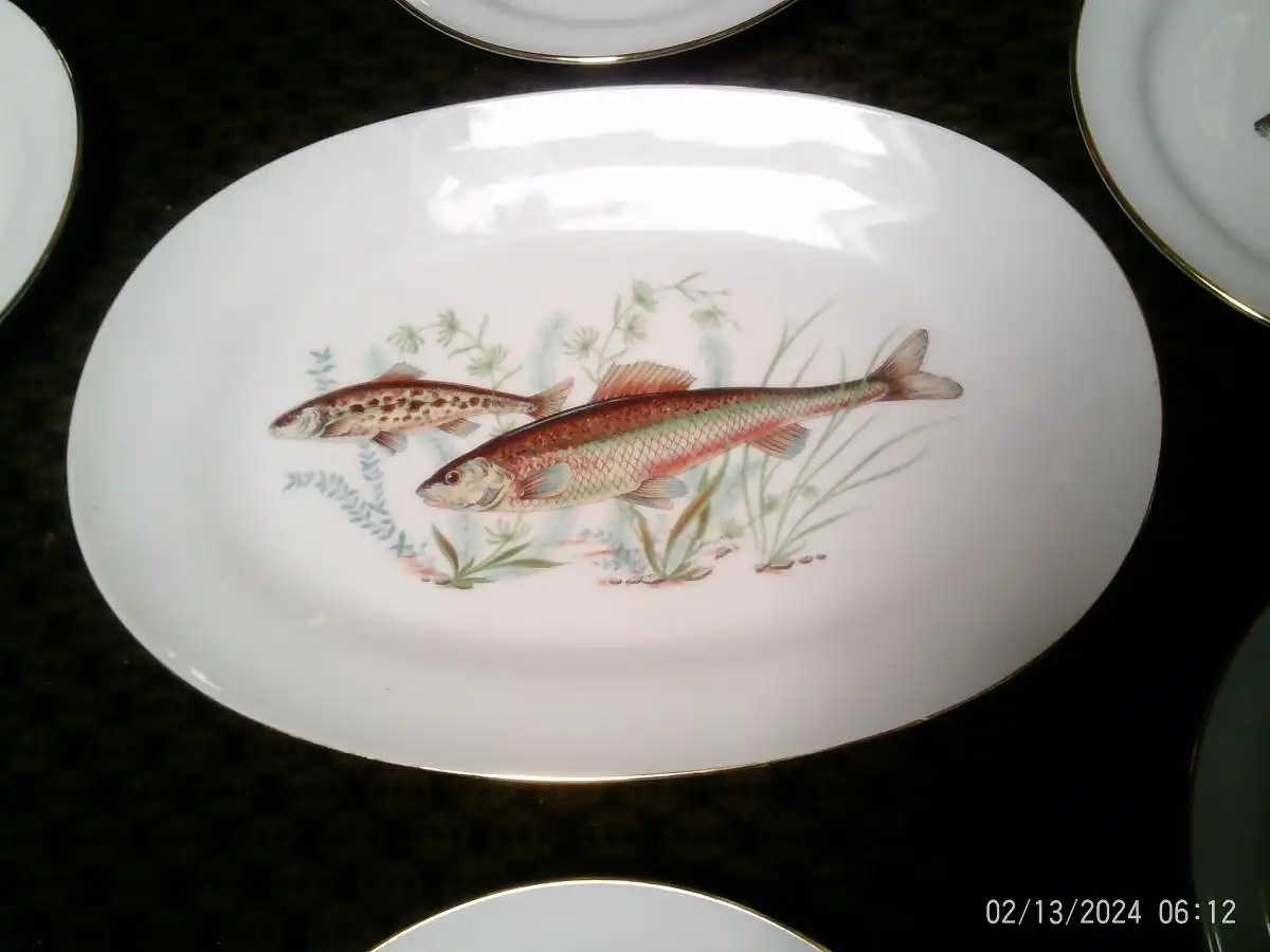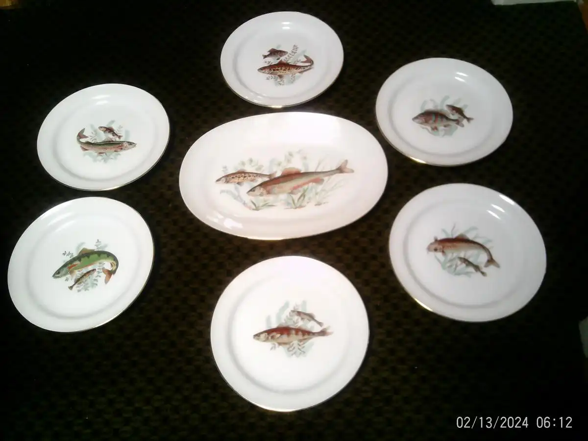 Richard Ginori Italien Fischservice 60 Jahre 6 Personen Essteller und Servierplatte !!