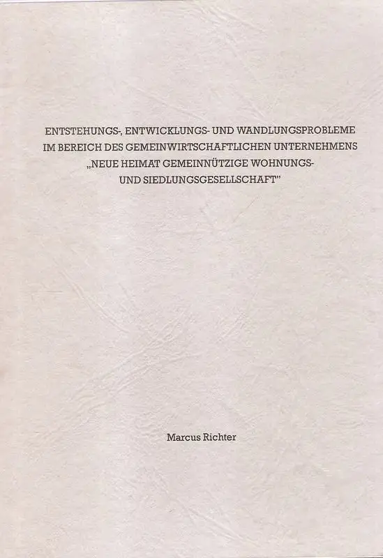 Richter, Marcus: Entstehungs-, Entwicklungs- und Wandlungsprobleme im Bereich des gemeinwirtschaftlichen Unternehmens "Neue Heimat gemeinnützige Wohnungs- und Siedlungsgesellschaft". (Dissertation).