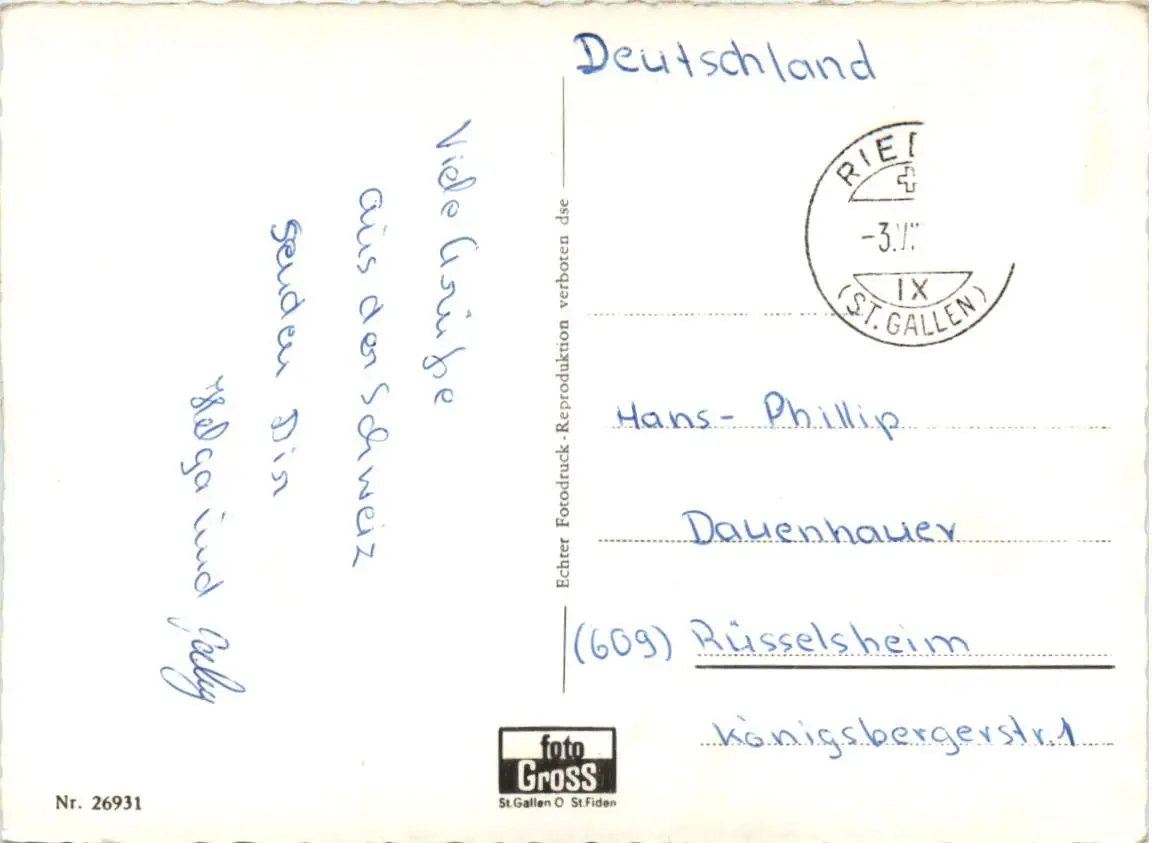 Danke. Alles Bestens. Können Sie mir allenfalls mitteilen, aus welchem Jahr die Postkarte stammt? Besten Dank.