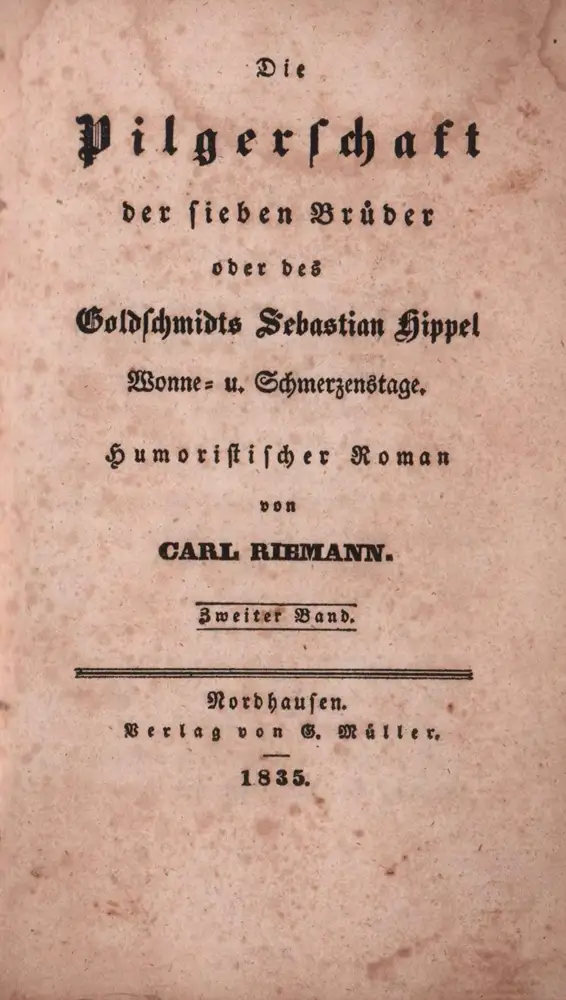 Riemann, Carl: Die Pilgerschaft der sieben Brüder oder des Goldschmidts Sebastian Hippel Wonne- und Schmerzenstage. Humoristischer Roman. BAND 2 (von 2) apart.