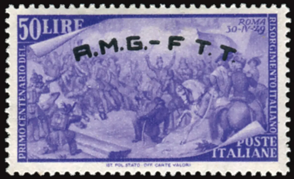 Risorgimento Lire 50 Sorten ohne Punkt nach der F Vollgummi MNH - Risorgimento Lire 50 Nr. 28a ohne Punkt nach F, Tippfehler durch Abnutzung der Drucktafel - sehr gut zentriert - Selten - Kat. euro 120 Cod. 945/16
