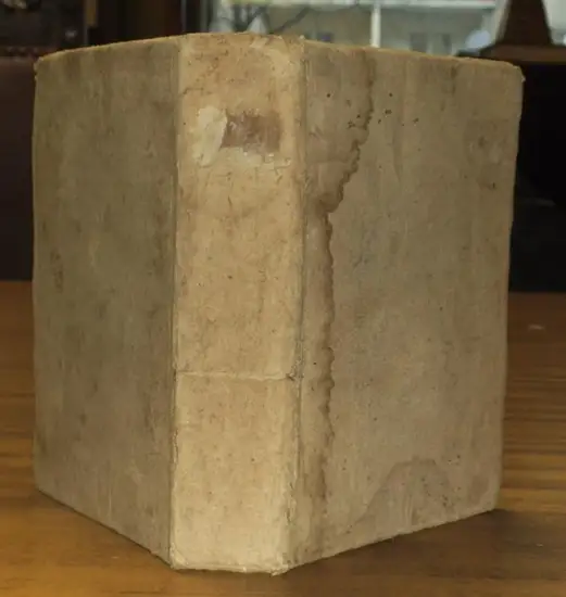 8°. Einfache Pappbroschur der Zeit, stärker wasserfleckig. 6 Bl., 345 Seiten mit gestochenen Kopf- und Schlussstücken. Seite 83/84 mit Einschnitt unten ca. 8cm, Seite 171/172 mit hälftigem Einriss am Innenrand oben. In der hinteren Hälfte im oberen Aussenrand mit gelöster Verklebung, dadurch einige Randfehlstellen. Im Innenbereich durchgehend etwas fleckig. Mäßig erhaltenes Exemplar