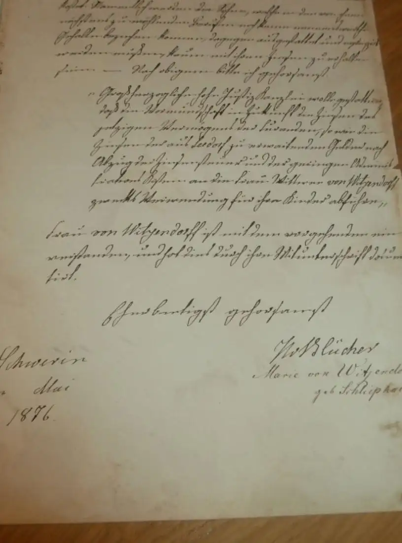 Rittmeister von Blücher in Wiebendorf , 1876 , W. von Witzendorff geb. Schliephacke , 5 Seiten , Adel Mecklenburg !!AZ8-a/WR