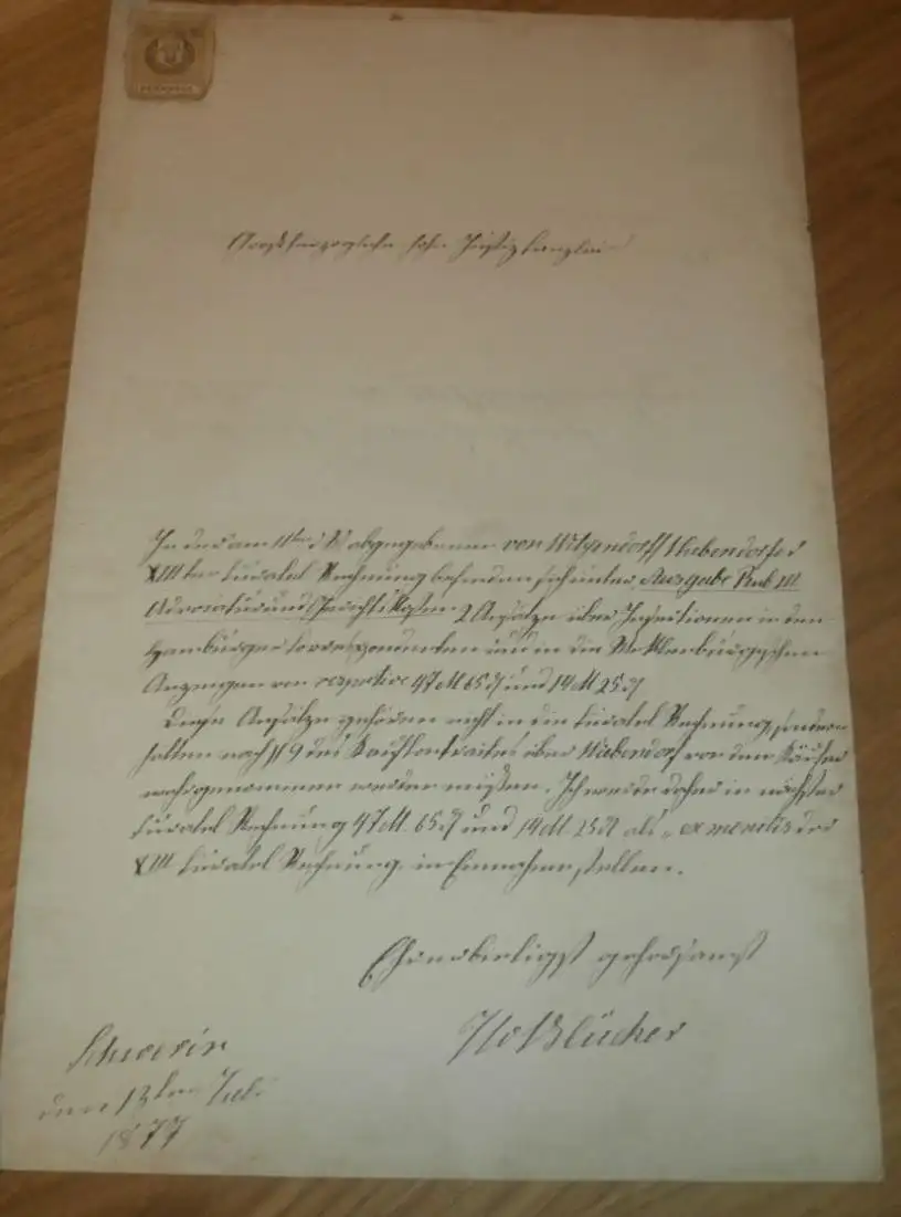 Rittmeister von Blücher in Wiebendorf / Bengerstorf , 1877 , W. von Witzendorff geb. Schliephacke , 2 Seiten , Adel MecklenburgAZ8-a/WR