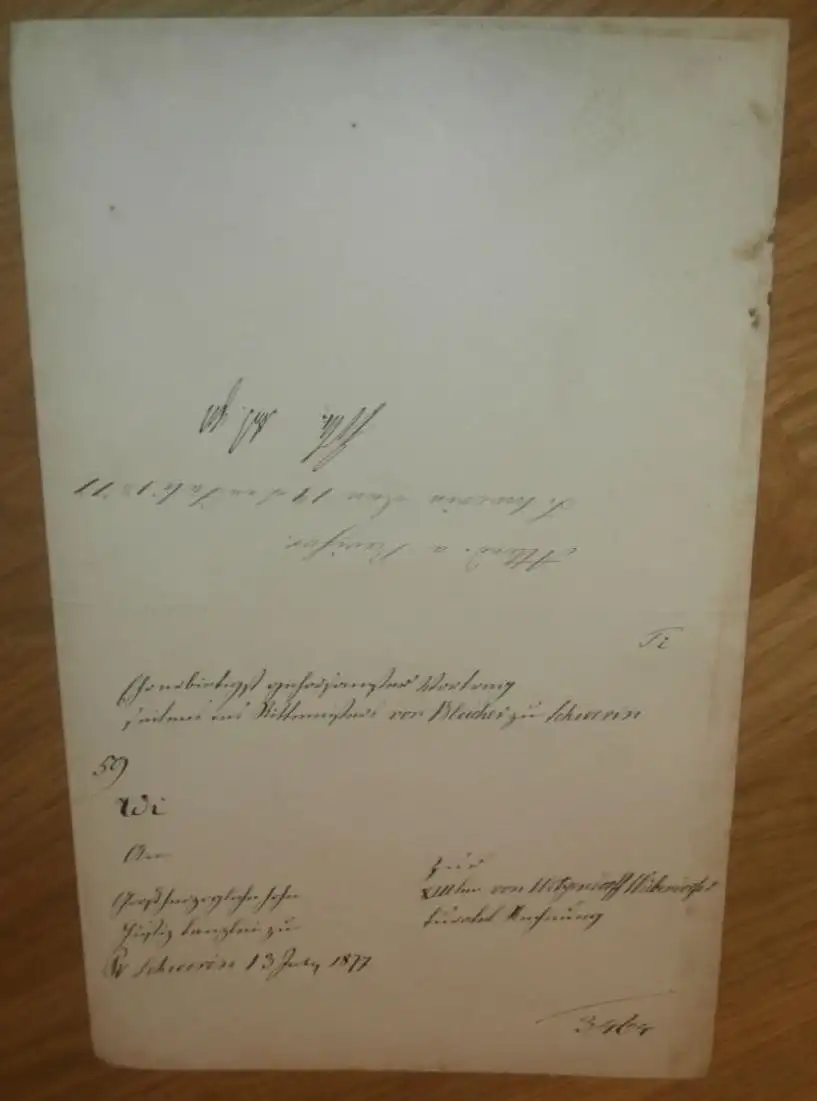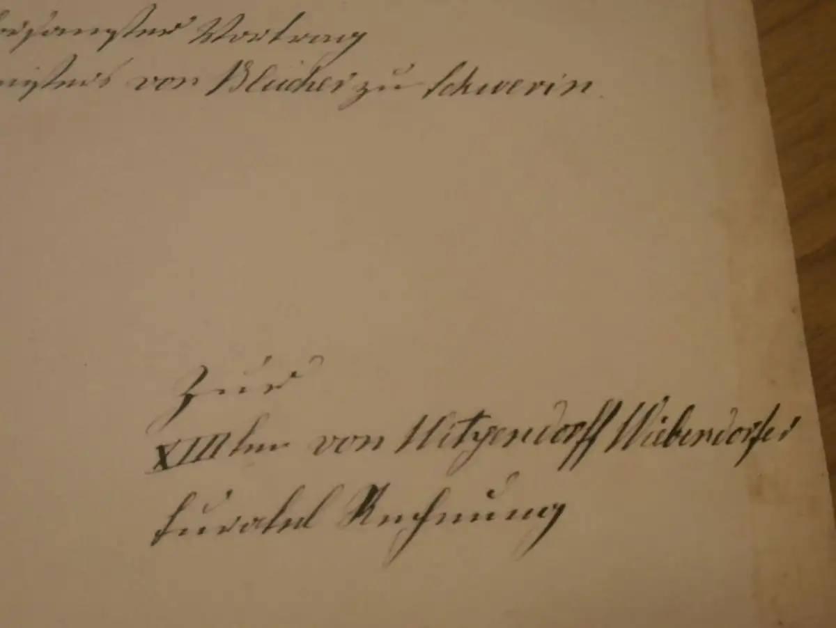 Rittmeister von Blücher in Wiebendorf , 1877 , W. von Witzendorff geb. Schliephacke , 2 Seiten , Adel Mecklenburg