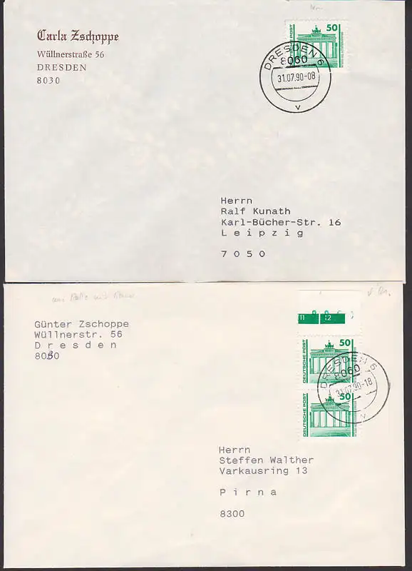 Rollenmarke mit Nr. 31.7.90, dabei Paar mit Rollenrand 50 Pfg. Brandenburger Tor