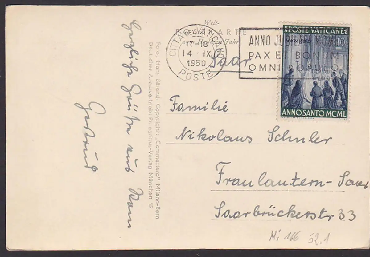 Rom Fotokarte Kuppel St. Peter Michelangelo Heiliges Jahr 1950 Vatikan Mi. 166