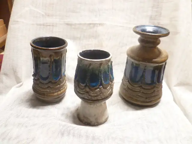 Strehla Keramiken Space Ära um 1960-70 Blautöne 3 Stück Konvolut