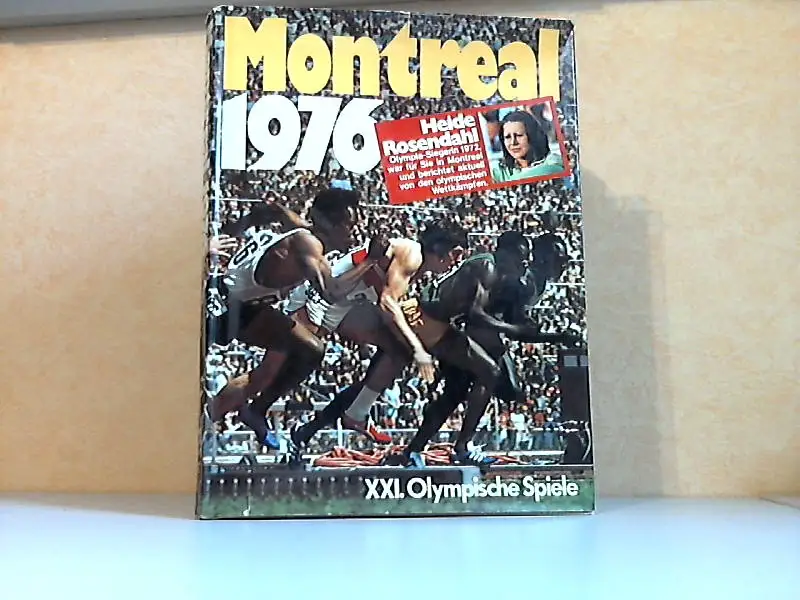 das Erscheinungsjahr ist geschätzt, Umschlagkanten mit stärkeren Bestoßungen, Jedem Sportbegeisterten wird das Herz hotier schlagen, wenn er noch einmal die großen Ereignisse der Olympischen Spiele in Montreal Revue passieren läßt Hier sind knisternde Spannung tuatione und Text festgehalten. Hier fühlt man sich, so oft man das Buch zur Hand nimmt, wieder an den Schauplatz nach Montreal versetzt. Die besten Sportfotografen haben die dramatischen Sekunden festgehalten. Bekannte Fachjoumalisten geben mit ihren Kommentaren diesem Buch die Würze. Entscheidend aber hat zum Gelingen dieses Buches eine Spitzensportlerin beigetr^en, deren Name Ihnen allen bekannt ist: Heide Rosendahl. ... (vom Umschlag) Beschreibung vom Antiquariat Ardelt 4c5a Antiquariat Ardelt