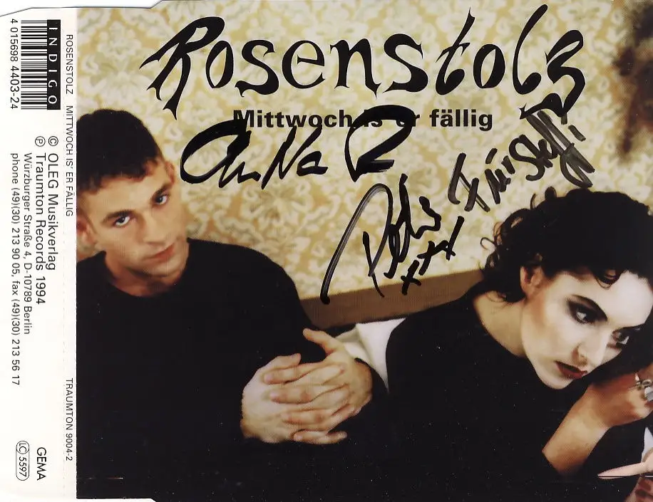 CD Single Rosenstolz - Mercredi Is'er Fällig, AUT (pour Steffi), état CD VG+ Hülle M-; Made in Germany 1995 Beaux Rauschton 9004-2, Tracks [Radio Verset I] 2.55, [radio Verion II] 2.48, [... Danse Den Edit] 4.40, [Sans électricité vers.] 1.58, (Demo Vers..) 2.58