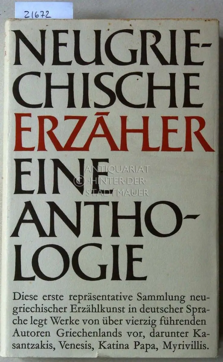 Rosenthal-Kamarinea, Isidora (Hrsg.): Neugriechische Erzähler. Eine Anthologie. Übertr., hrsg. u. mit e. Nachw. vers. v. Isidora Rosenthal-Kamarinea.