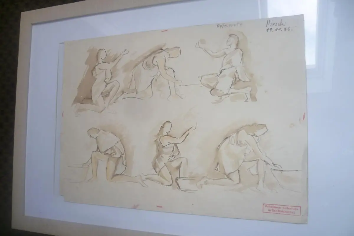 signiert: Hirschi datiert 16.04.1947 ; Werk entstand während seiner Zeit des privaten Unterrichts in Bad Reichenhall , verso weitere Studien !