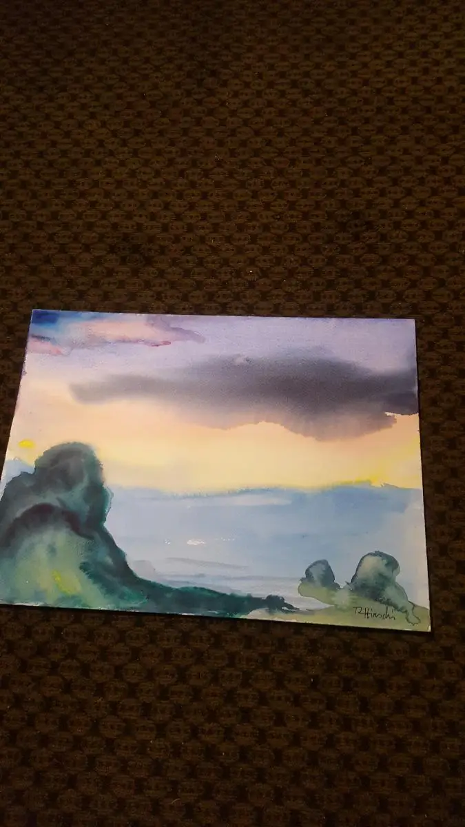 Rote Reiter Malergruppe Rudolf Hirschi rechts signiert um 1950Landschaftsansicht Nr.2 am Meer buntes Aquarell Studien für Gemälde